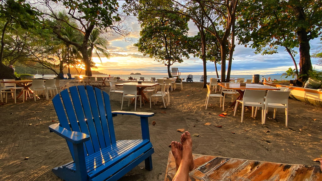 The beaches are mostly left to us locals, fishermen, and a few determined skim boarders. Morning light finds lanchas, “veleros” (sail boats), catamarans, and an assortment of fishing boats anchored just offshore with kayaks for getting to and from them stacked and chained to the coconut palms and dry forest trees growing at the high tide line. The beachfront restaurants are uncrowded and sometimes even deserted in the mornings, trading cocktail service for pitchers of coffee along with Tico and Gringo style breakfasts. “Sunset snipers” are rewarded with dramatic skies — transient clouds that craft long shadows and plethora saturated colors.