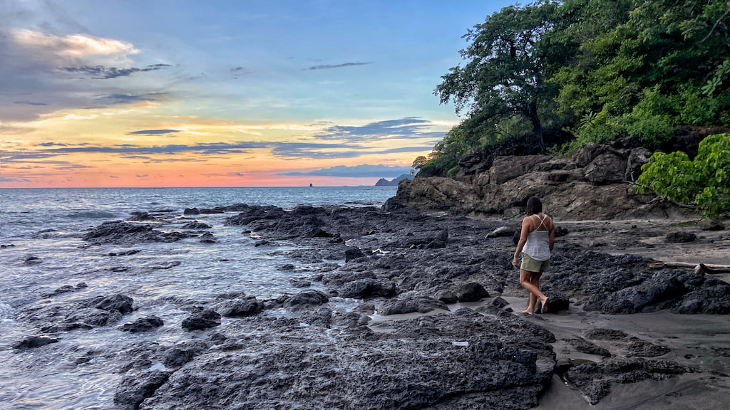 With fewer sunbathers, tide pools and rocky coves reclaim a hush: ghost crabs patrol exposed rock, whimbrels and sand pipers run determinedly up and down where ocean meets sand, tiger herons hunt the shallows of mangler in the tidal estuaries, howler monkeys howl overhead, and garrobos and iguanas snooze in the wet, leaf laden tree branches nearly touching the ground under their own weight.